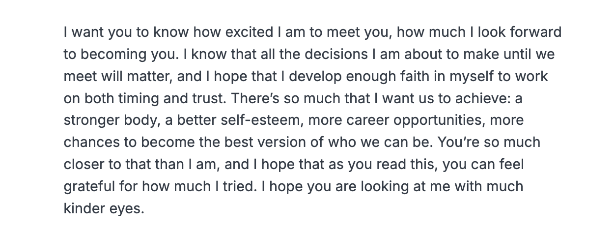 This is typically my format in my letters to the future: